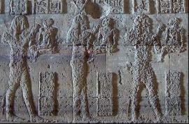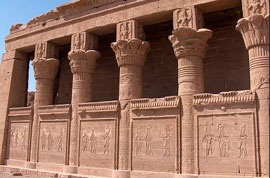 The Roman Birth House was built as a substitute for the Birth House of Nectanebo, which was cut in two after they had built a new wall around the temple of Hathor. There are some fine carvings on the wall, but much has been destroyed by Coptic iconoclasts.