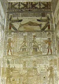 The tiny Per-Ur Chapel, from where the New Year procession started. On the picture is Hathor, to her sides are Maat and Isis.