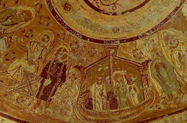 | | | | | Interiors of Bagawat Most of the interiors of the chapels of Bagawat were probably without much decorations. And among the ones which were decorated, the hardship of time has been cruel. In the finest, the figures have been defaced by Muslim fanatics decades ago.