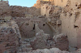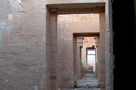 Around the temple there was a village that must have housed a couple of hundred persons. Some buildings are in about as fine condition considering the age of more than 1,500 years. | Standing inside the holiest of the holy, looking out, you actually see right through the fortified village and into the valley below. Impossible to catch on photo, but really a nice view. |
