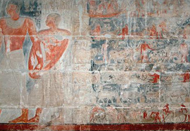 The wall decorations of the Mastaba of Ti are colorful and interesting, telling us about everyday life in the Old Kingdom.