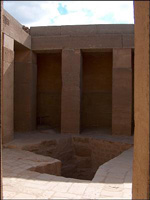 Statue of Ti in the Serdab. You look into one of three peep-holes in the deep end of the Mastaba.