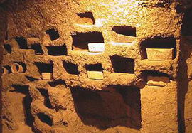 The catacombs of Tuna el-Gebel had the same purpose as catacombs elsewhere. They were graves that could be visited by the deceased's family, safe from the elements of sun, water and wind. Not only inhabitants of Hermopolis were placed to rest here, but also sacred animals. |