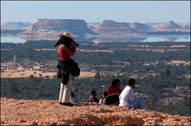 | | | | The sweetest oasis Siwa appears at first as a sweet and innocent place deep in the desert which has just opened its eyes to the modern world and still let's itself be amazed. | | | | | View from the Gebel Dakrur, overlooking the oasis and the Birket Siwa in the distance, dominated by the White Mountain | The town of Siwa and the Shali at night. | | |
