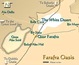 The isolated oasis With only 4,000 inhabitants and about 200 km to the first neighbour settlement, Farafra is among the most isolated places in Egypt. It is part of the Western Desert circuit, so it still gets many visitors. And the place has a number of attractions, of which the adjacent White Desert is one of Egypt's most famous nature sights.