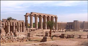 | The Temple of Luxor was dedicated to the Theban Triad, the three gods Amun-Min, Mut and Khonsu (the two latter had their respective temples at Karnak). Mut was Amun-Min's wife, and Khonsu their son. The temples at Karnak and the Temple of Luxor were connected by an impressive avenue, flanked with grand sphinxes on both sides. The entire avenue was more than 3 km long, and must have had more than 2000 sphinxes all together.