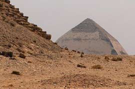 Dahshur has 5 main pyramids (plus 2 subsidiary pyramids), and the strange thing is that the 2 oldest are best preserved, the Red Pyramid and the Bent Pyramid, both built by Snefru, the father of Cheops.