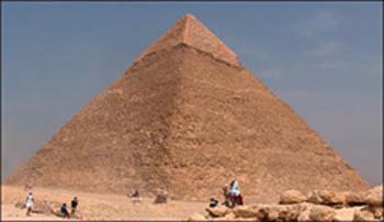 But he placed the pyramid on a mound 10 meters higher than the ground of Cheops. So that is the reason why his looks bigger.