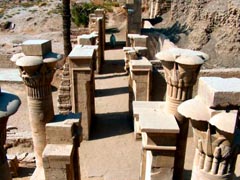 One interesting fact about the additions performed by the command of Ptolemaic rulers is that they actually reconstructed the original structure, rather than adding their own cartouches. Two statues are in place in the most sacred sections of the temple, one headless of Ptah himself and another of Sekhmet. Sekhmet's statue is placed in the chapel dedicated to Hathor. |